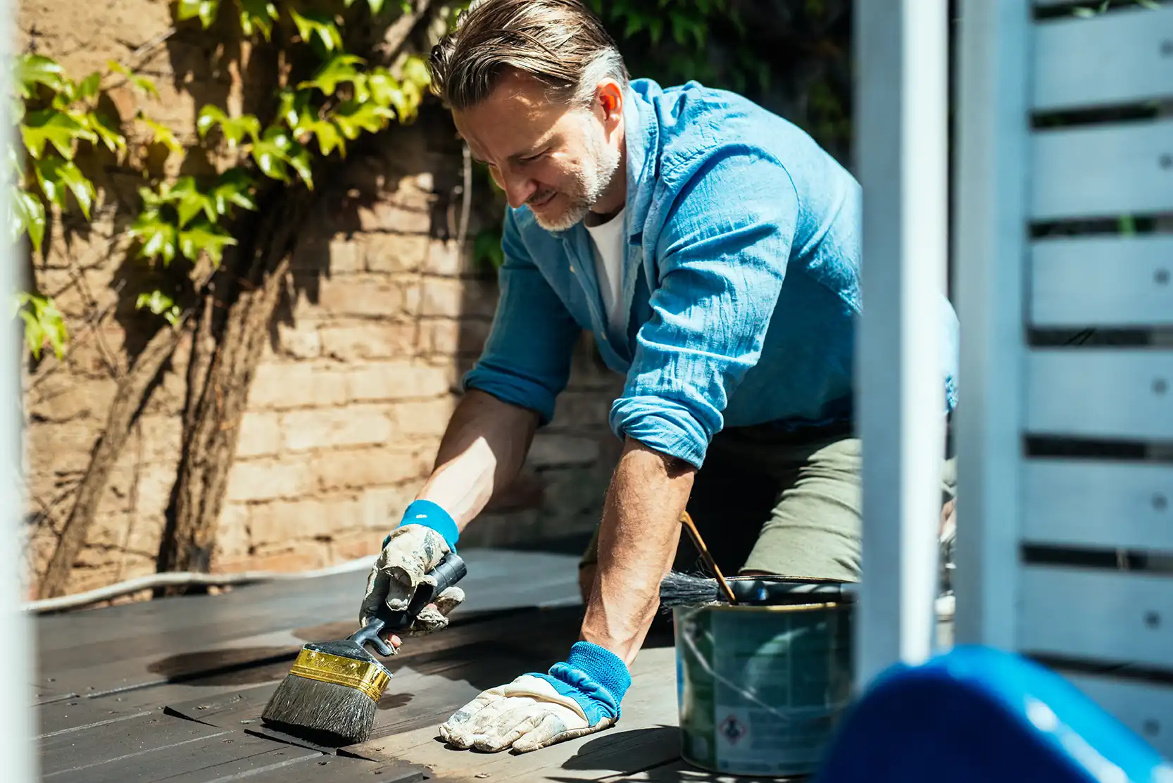„Gut vorbereitet ist halb geschützt“, empfiehlt MDH. Bevor Farbe, Öl, Wachs oder Lasur aufgetragen werden, muss das Holz sauber, trocken und glatt sein. Alte Altbeschichtungen oder Verwitterungen abschleifen, ggf. auch Nut/ Feder-Verbindungen säubern. Danach eine passende Grundierung wählen – etwa Holzgrund oder Grundieröl mit Bläueschutz. Diese Schritte helfen, dass der Schutz tief einzieht und lange hält.
