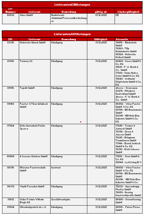 Folgend erhalten Sie die kompletten LieferantenEIN- und AUSlistungen Januar 2026.